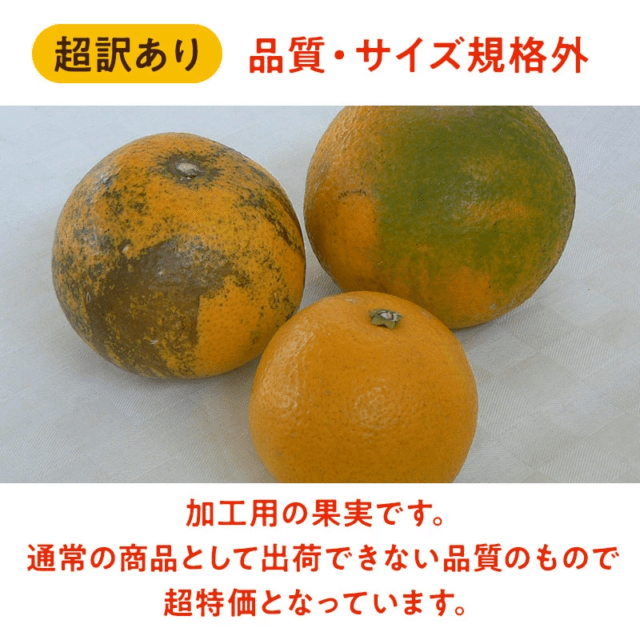 | 通常の商品としては出荷できない品質で加工用です。表皮にキズ・シミなどがあります。規格外を外れるサイズも含みます。完熟であったり、多少の傷みがあるものも含みます。味・鮮度が劣り、品質・サイズにバラつきがあります。ジャムなど加工してお召し上がりください。 |