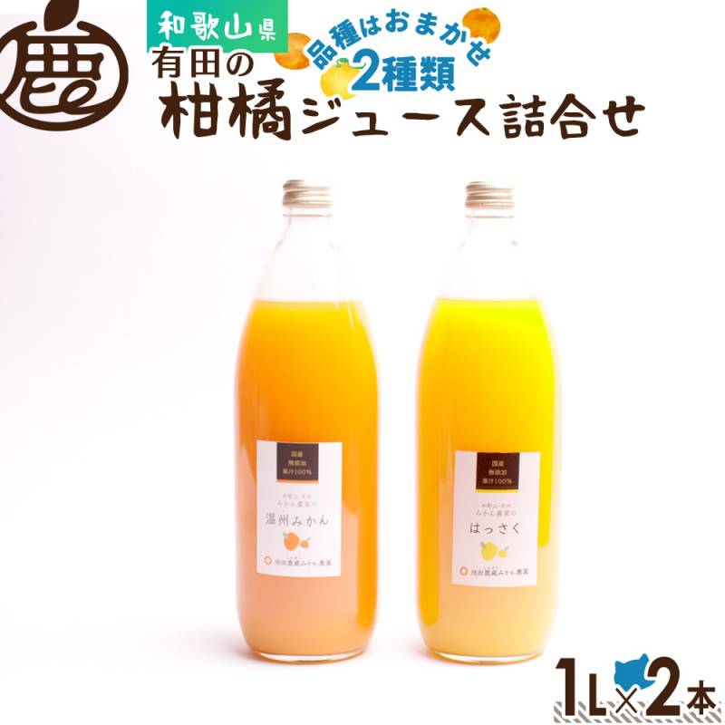 有田の柑橘 ジュース 詰め合わせ 1L×2本・2種類【 送料無料 無添加 国産 100% ストレートジュース 詰合せ 品種おまかせ 温州みかん 清見オレンジなど 和歌山 】