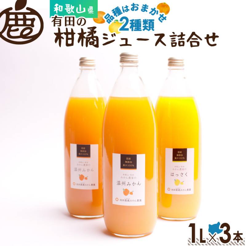 有田の柑橘 ジュース 詰め合わせ 1L×3本・2種類【 送料無料 無添加 国産 100% ストレートジュース 詰合せ 品種おまかせ 温州みかん 清見オレンジなど 和歌山 】