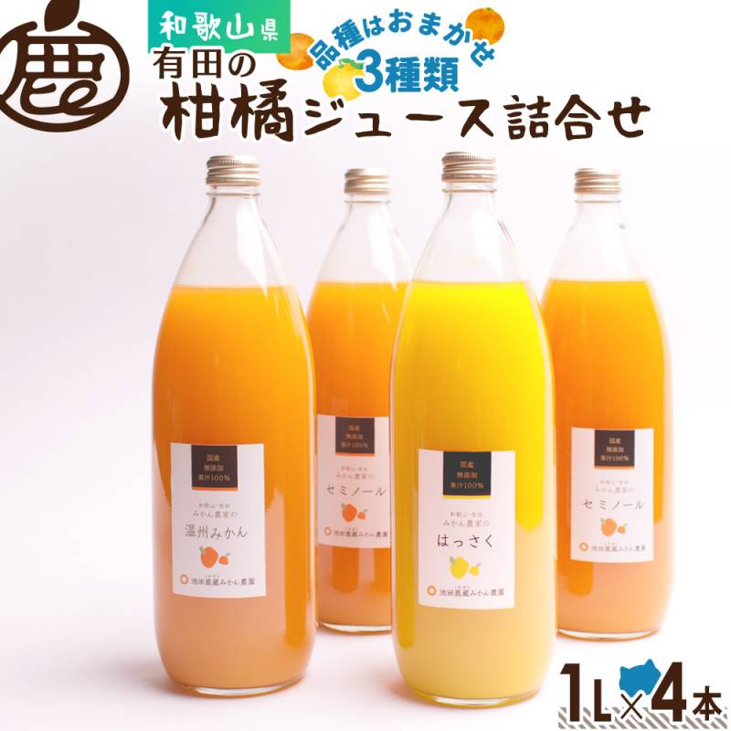 有田の柑橘 ジュース 詰め合わせ 1L×4本・3種類【 送料無料 無添加 国産 100% ストレートジュース 詰合せ 品種おまかせ 温州みかん 清見オレンジなど 和歌山 】