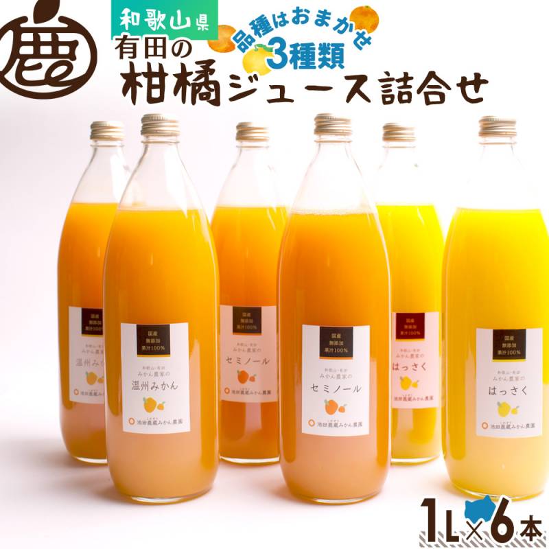有田の柑橘 ジュース 詰め合わせ 1L×6本・3種類【 送料無料 無添加 国産 100% ストレートジュース 詰合せ 品種おまかせ 温州みかん 清見オレンジなど 和歌山 】