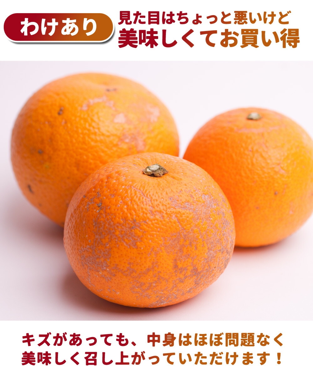 | 風によりキズやスレ・黒点などが外皮についていますが、皮をむけばほとんど問題なく、美味しく食べていただけます。サイズは規格外を含む混合です。ご家庭用や親しい方へのプレゼント・お裾分けにもどうぞ。 |